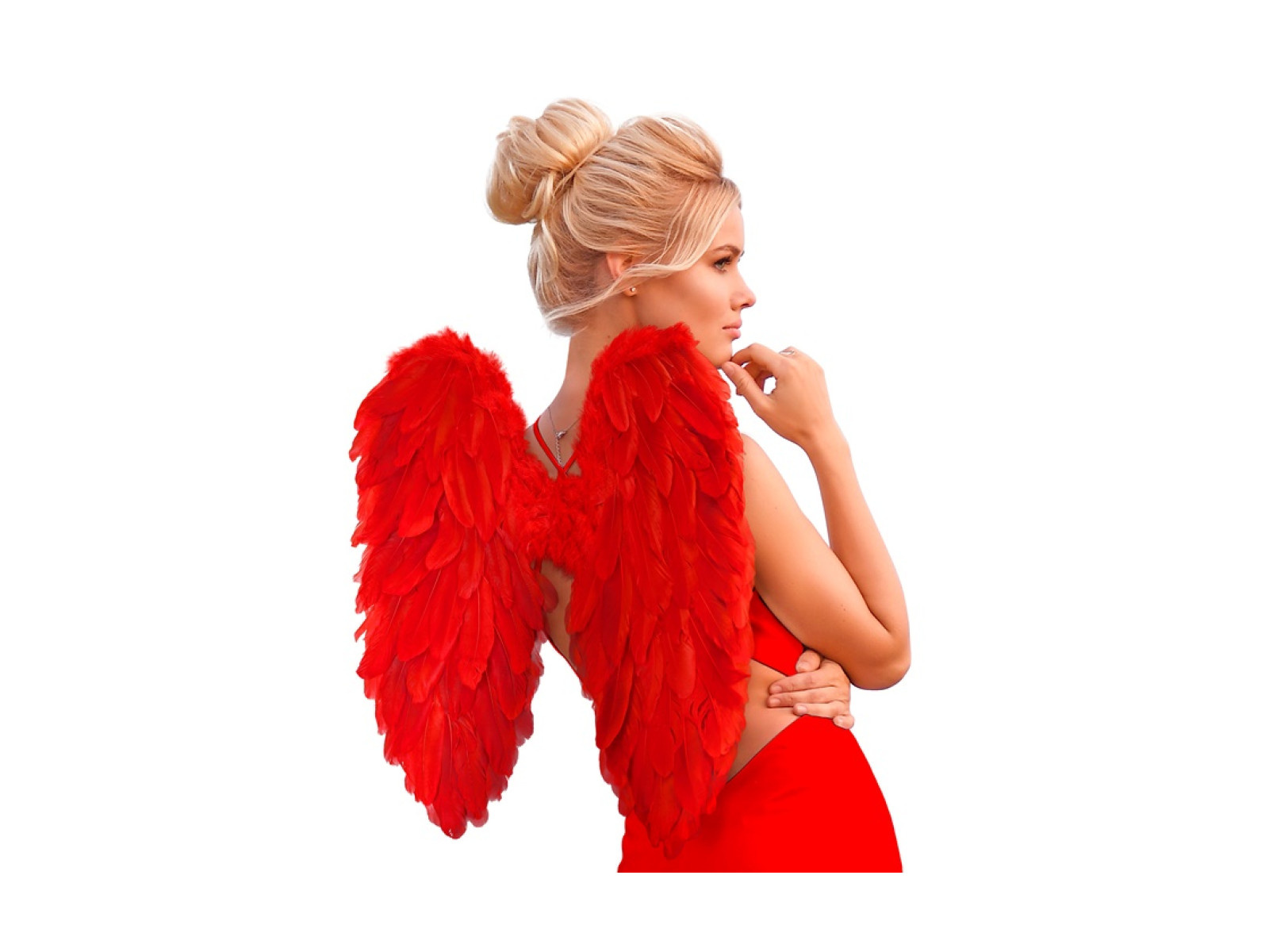 • Piros összecsukható tollszárnyak 50×50 cm felnőtteknek.