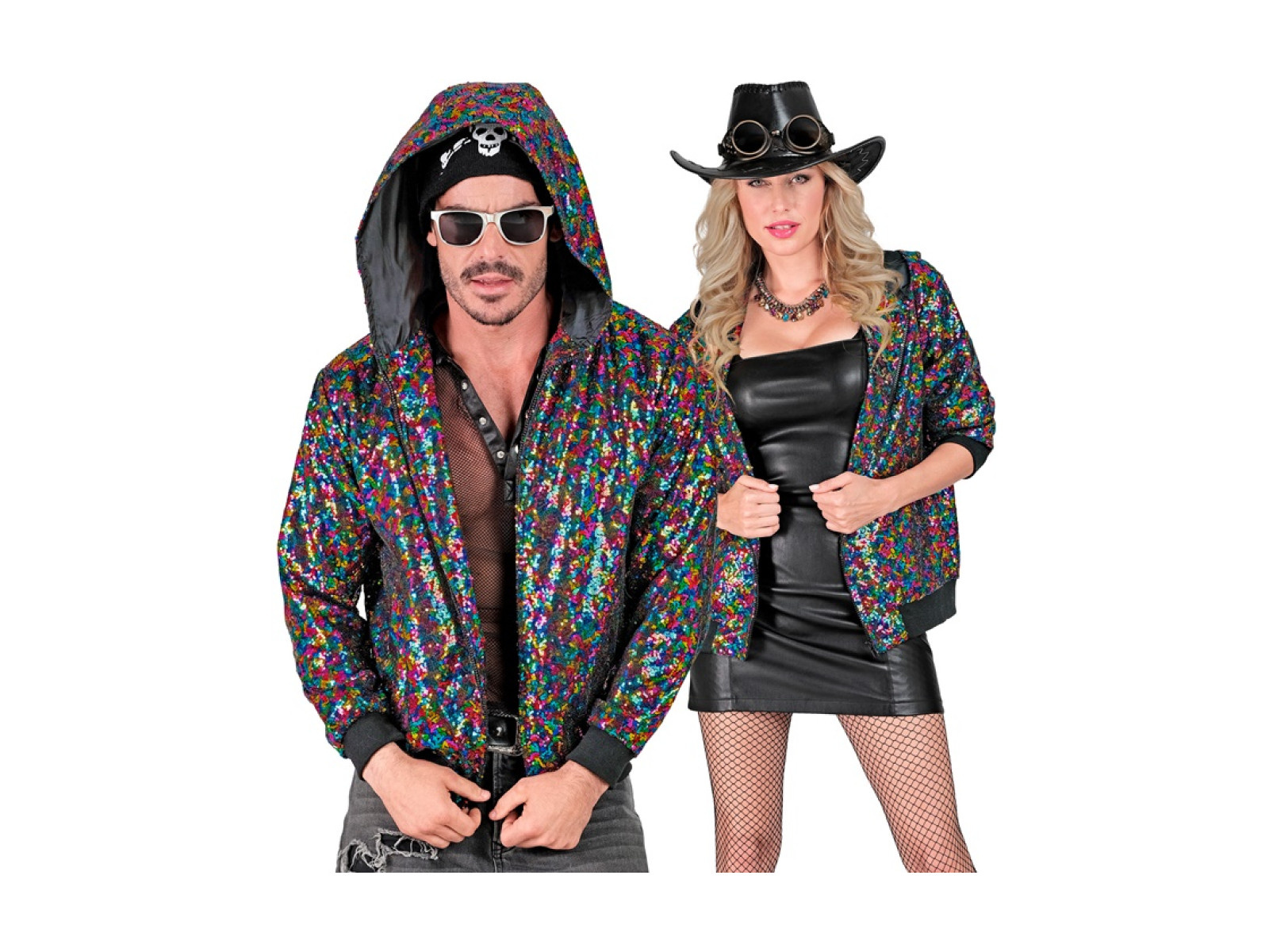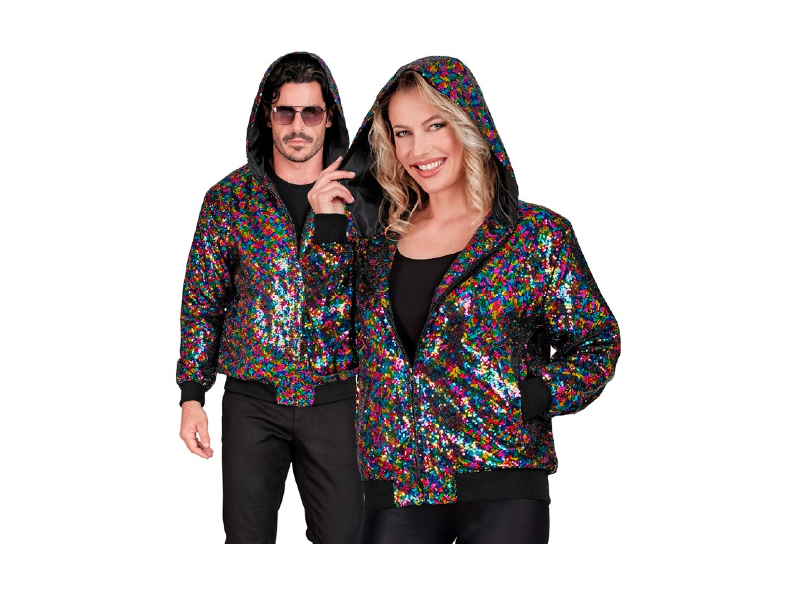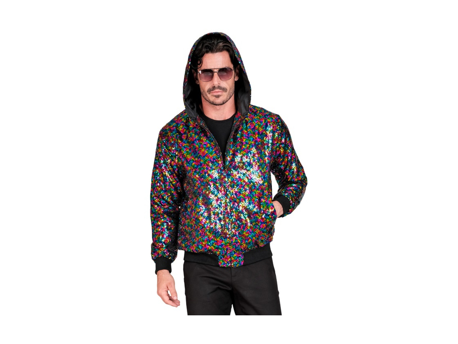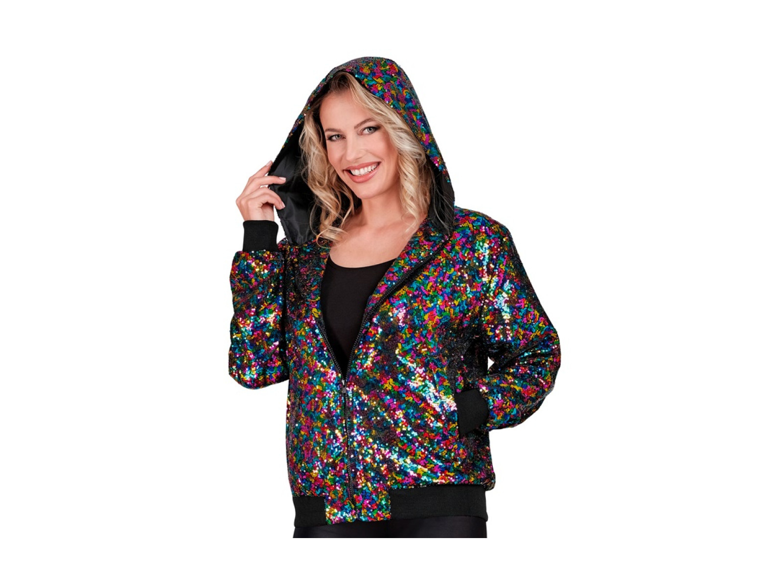 Party flitteres kabát - kapucnis bomber - többszínű