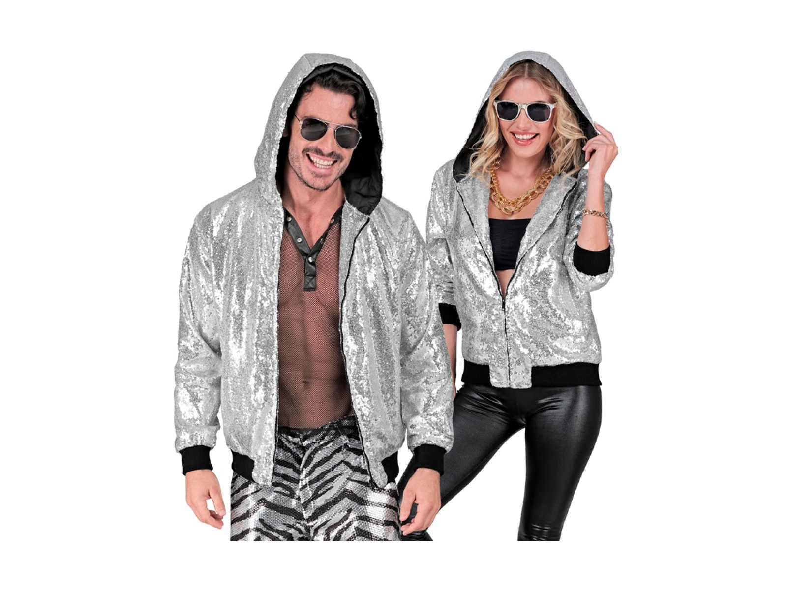 Party flitteres kabát - kapucnis bomber - ezüst