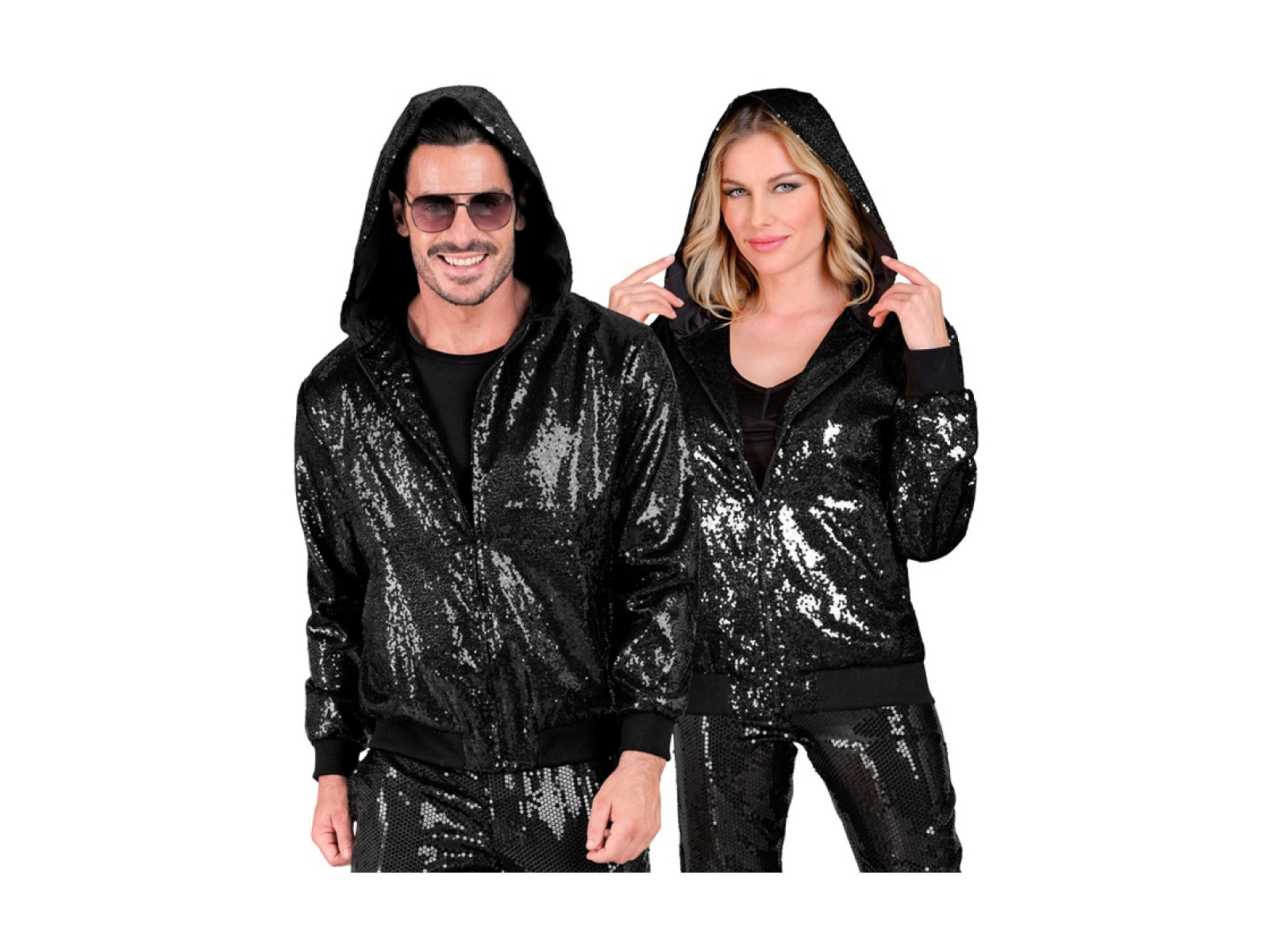• Party flitteres kabát - kapucnis bomber - fekete felnőtteknek.
