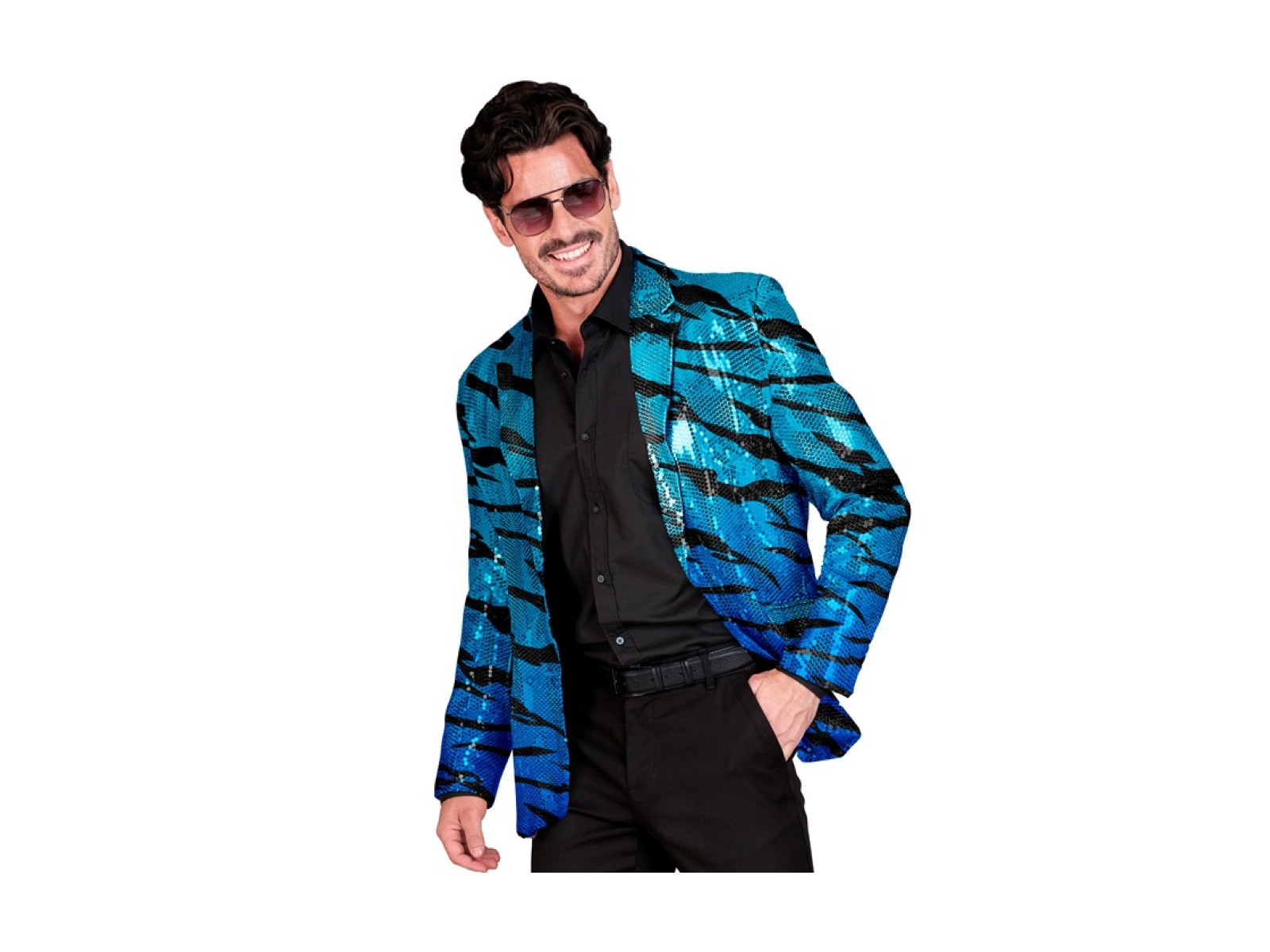 • Party Fashion party kabát - kék flitteres, hullámos mintás férfi kabát.