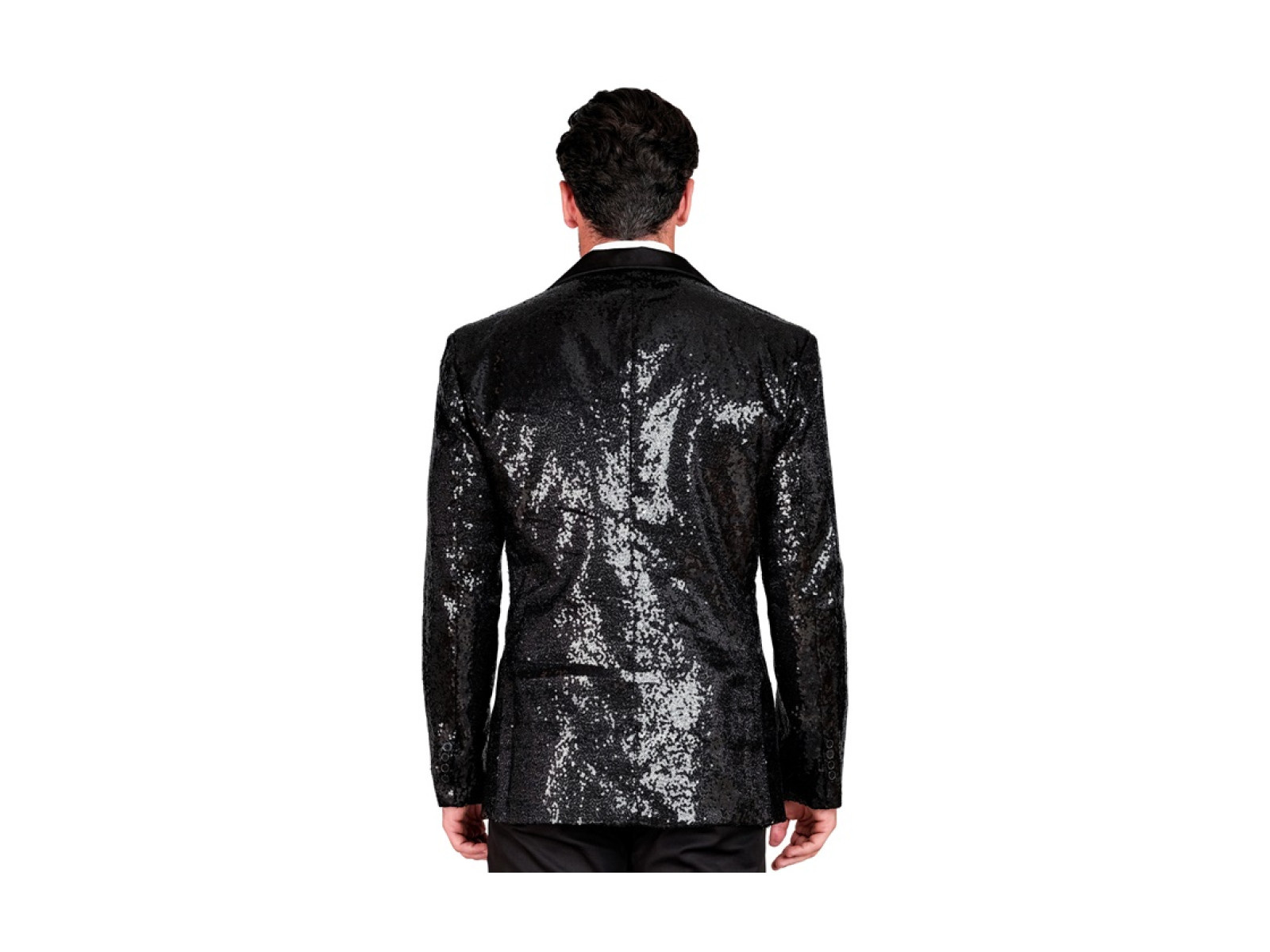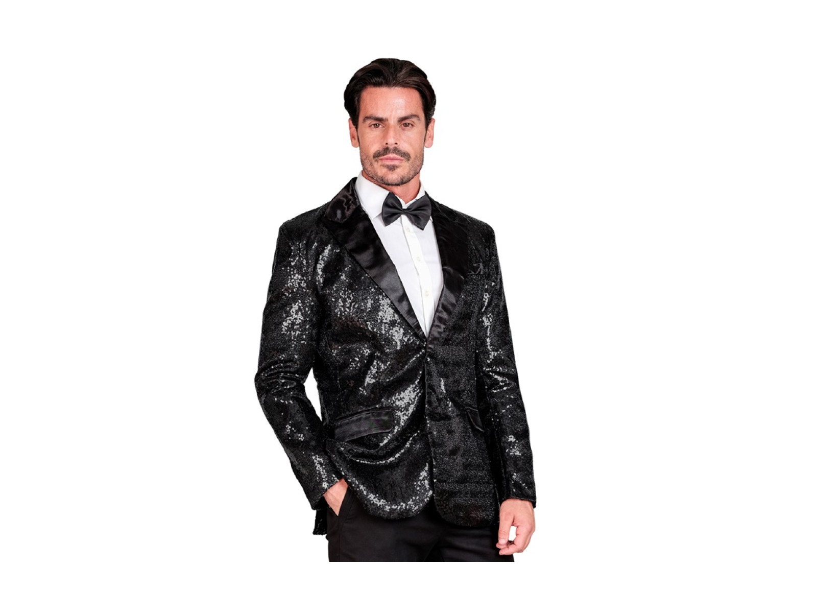 Party Fashion fekete flitteres blézer szatén gallérral és zsebekkel