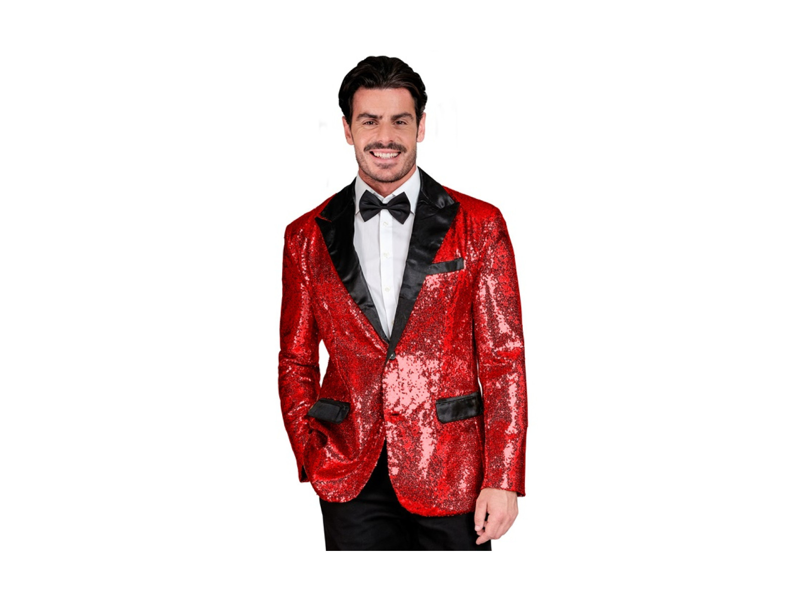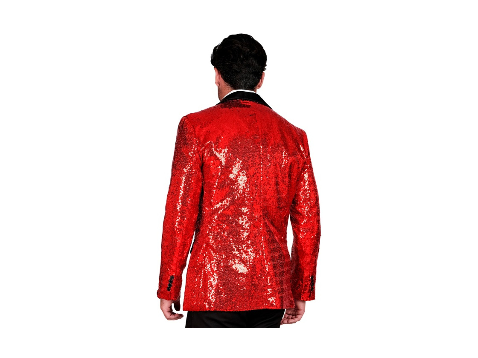 Party Fashion piros flitteres blézer szatén gallérral és zsebekkel