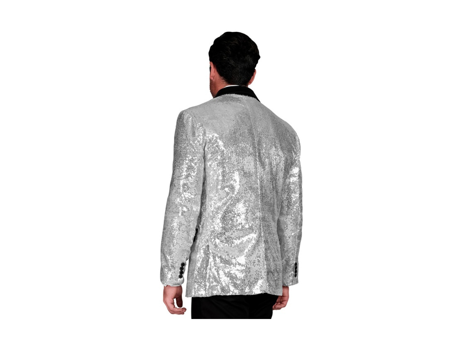 Party Fashion ezüst flitteres blézer szatén gallérral és zsebekkel