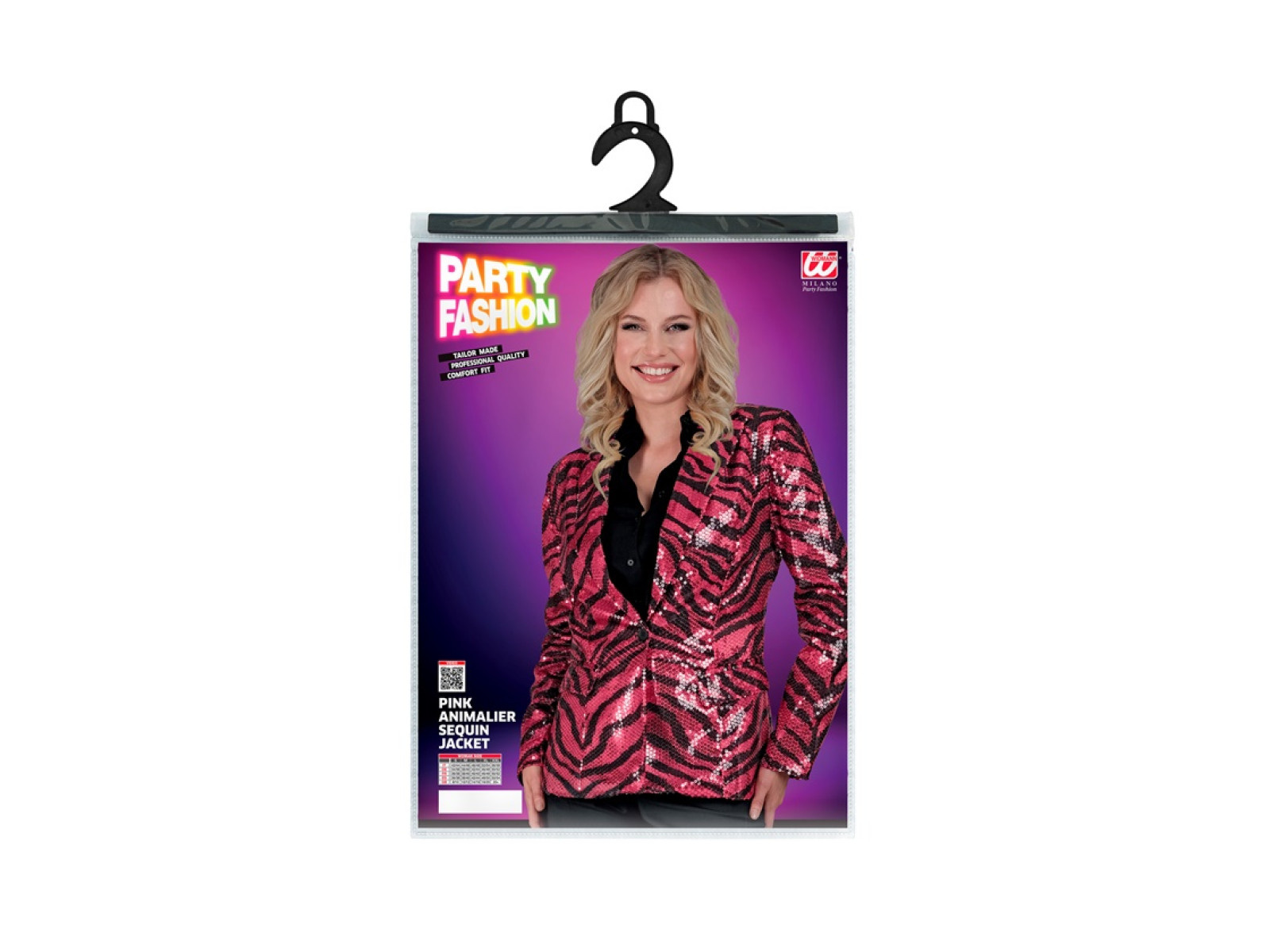 Party Fashion party kabát - rózsaszín flitteres állatmintás - zebra