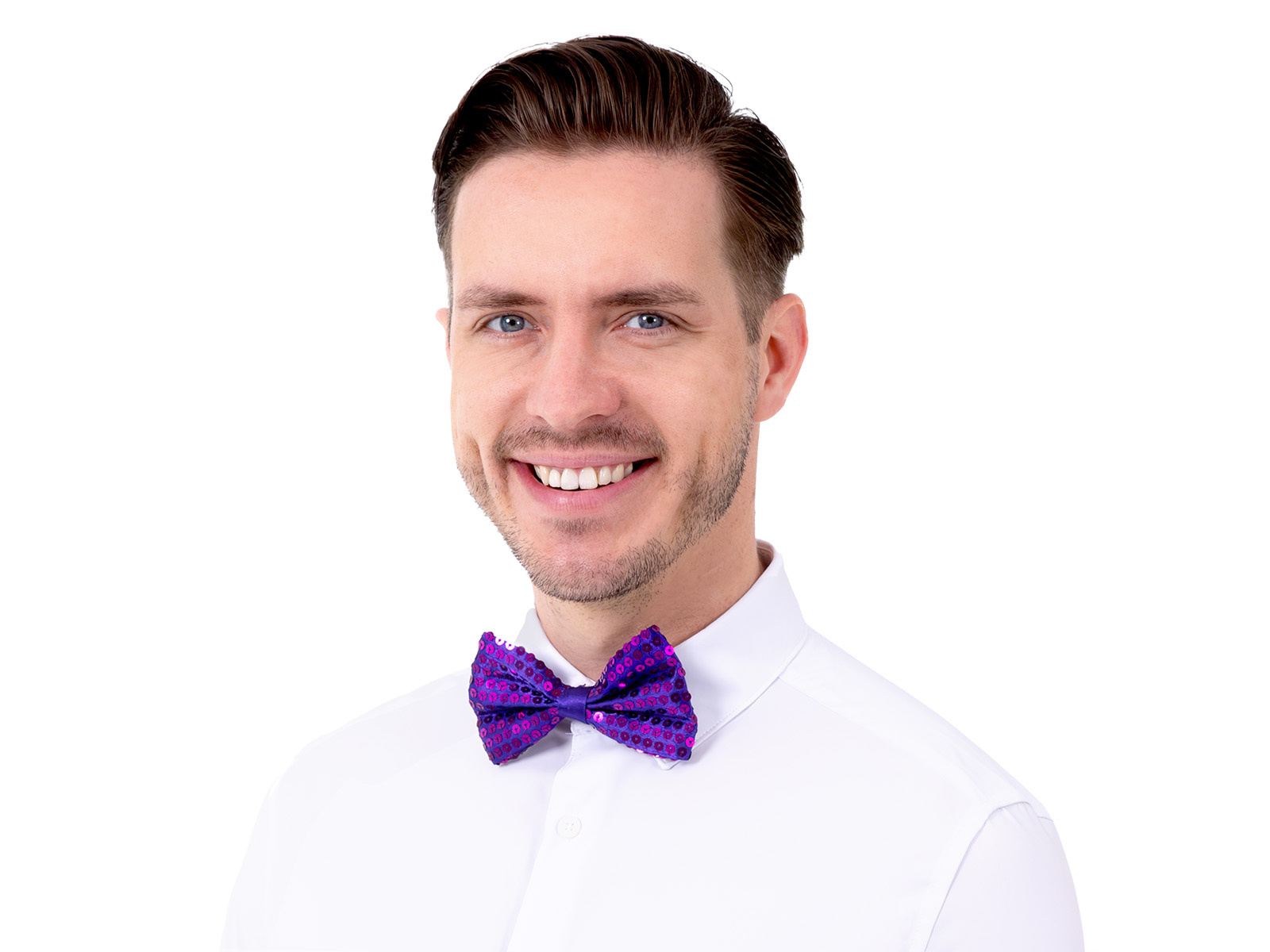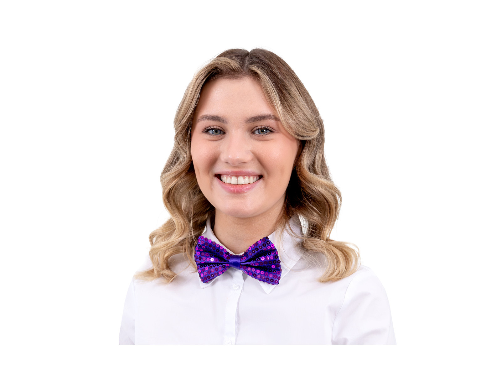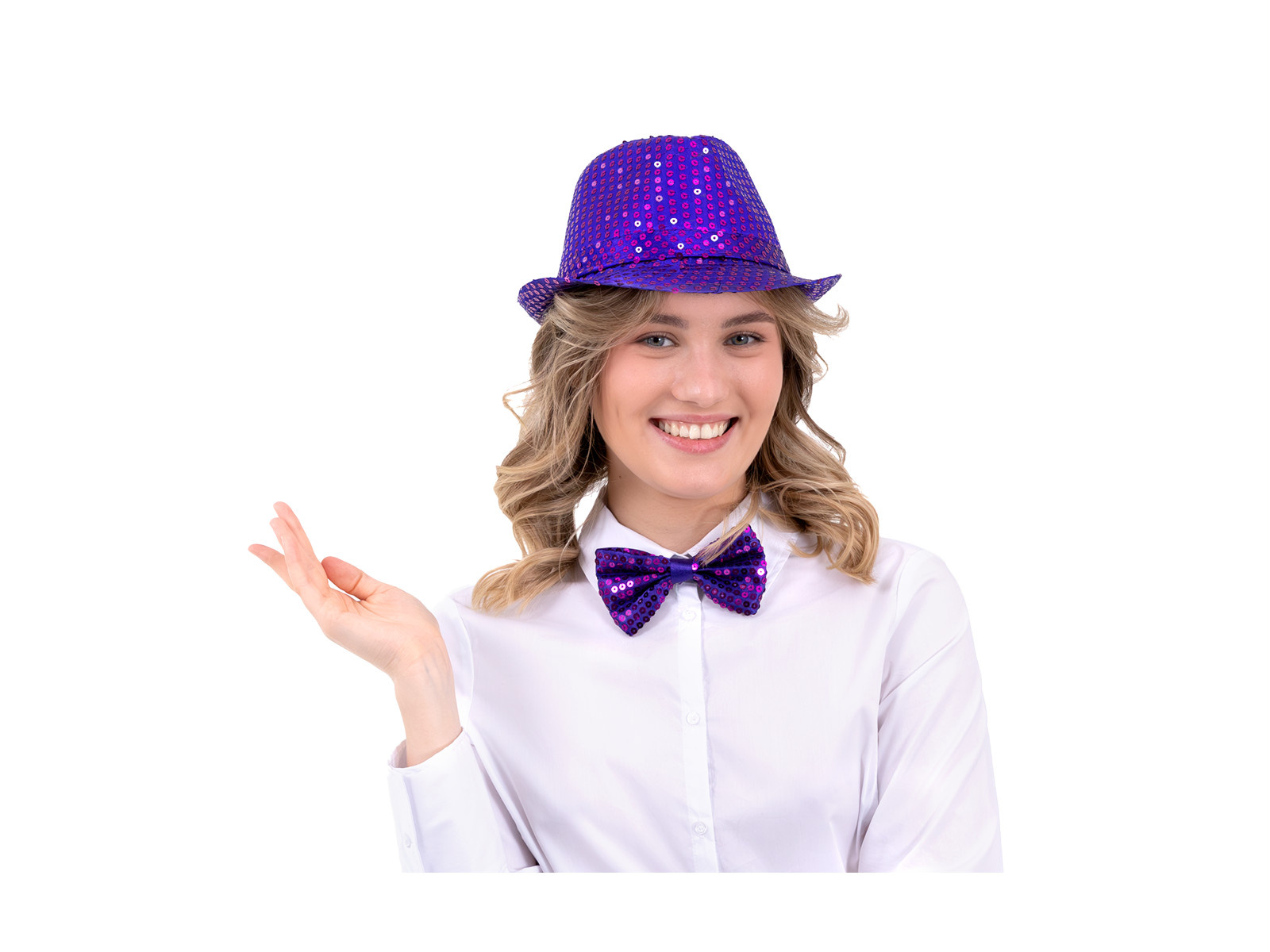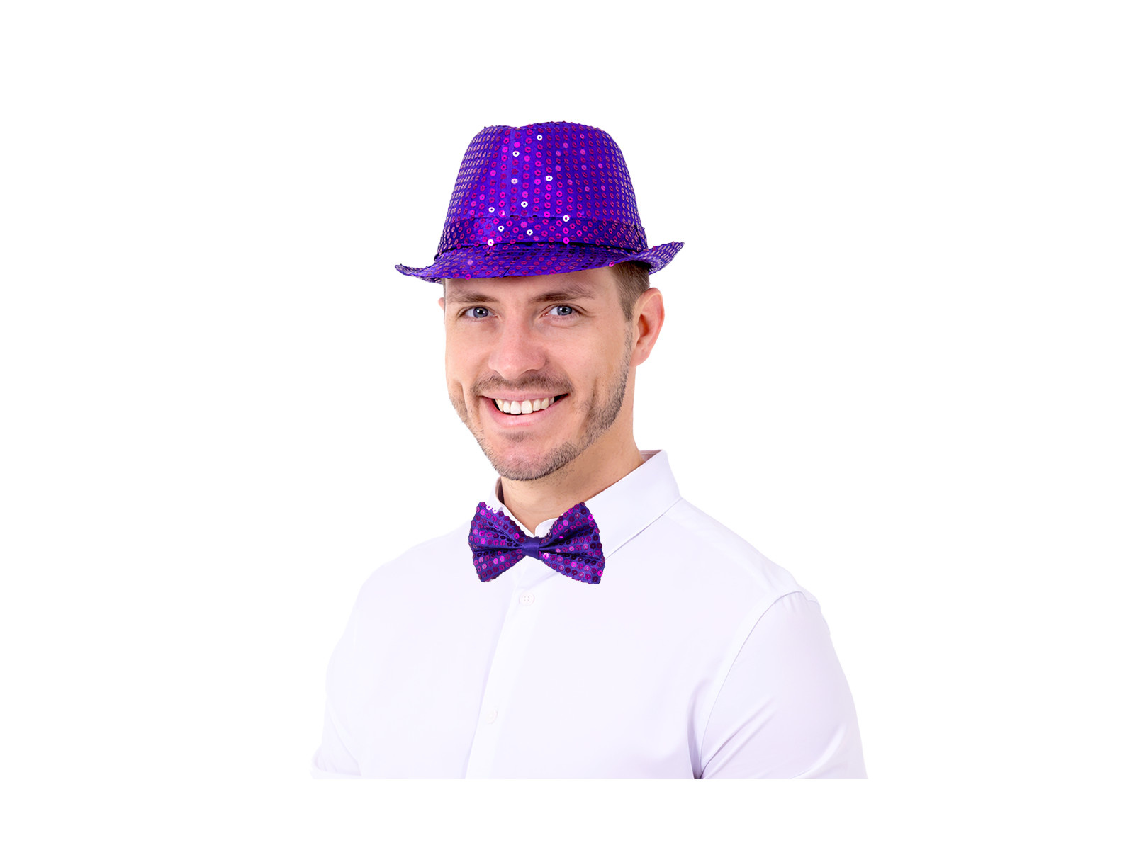 • Flitteres csokornyakkendő lila színben. A csokornyakkendő állítható rögzítéssel rendelkezik.
