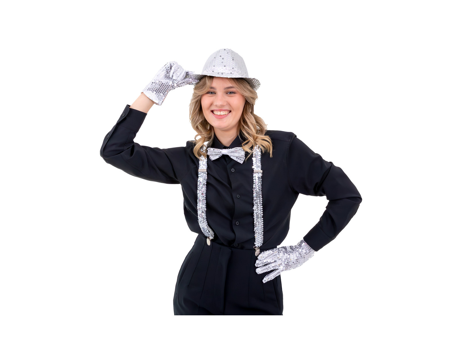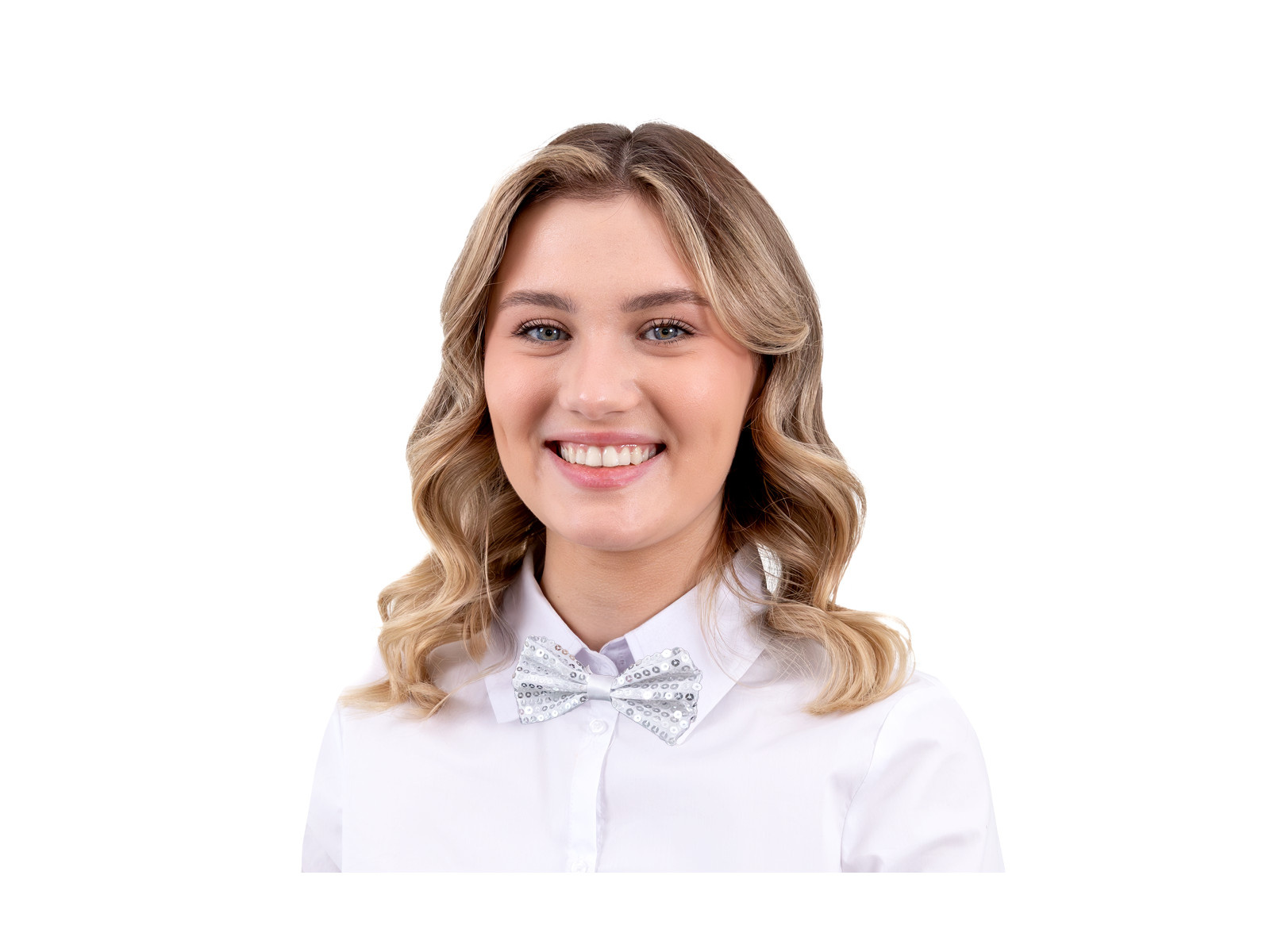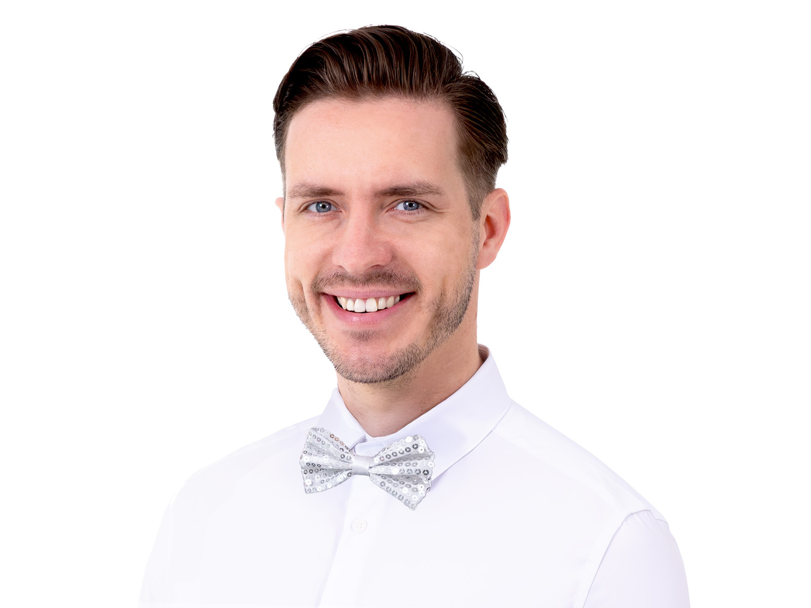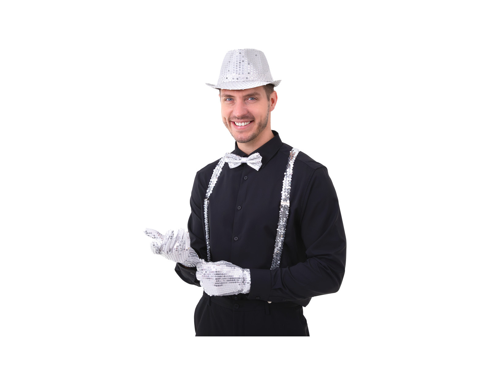 Ezüst flitteres csokornyakkendő - 7 x 12 cm - 1 db.